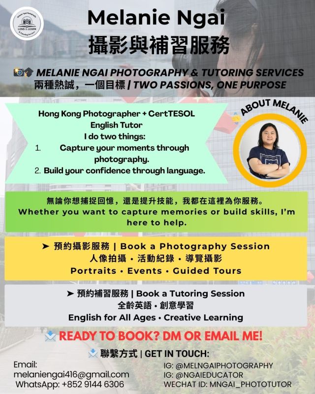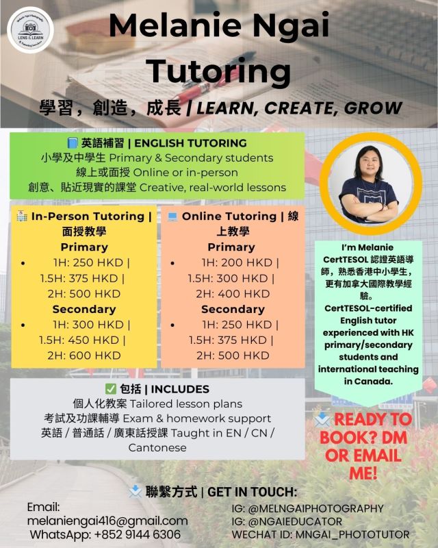 我精通英语、粤语和普通话,能根据本地香港课程、IGCSE、IB、HKDSE及其他国际课程,设计富有趣味且贴近学生需求的课程。